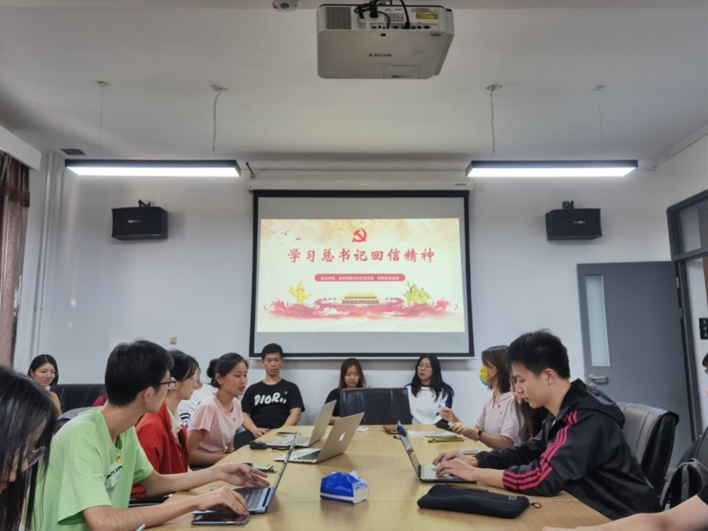 本科生与研究生党支部共同举办支部党员大会。为大家播放了“庆祝北京外国语大学建校80周年大会-习近平总书记给北外老教授回信”等相关视频,并给同志们讲述了英院云杉的感人故事。