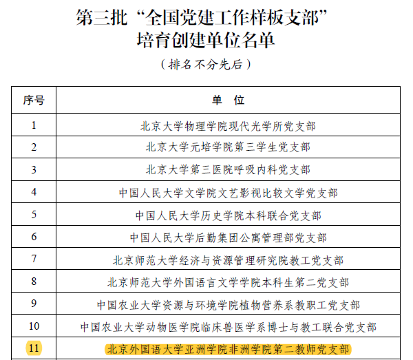 党委宣传部副部长、新闻中心负责人王薇薇宣读了《教育部办公厅关于公布第三批全国党建工作示范高校、标杆院系、样板支部培育创建单位名单的通知》。党委组织部常务副部长冯刚为太阳集团tyc9728非洲学院教师第二党支部授牌,勉励支部党员在党建和学科建设深度融合的道路上继续前进。