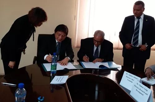此外,北外代表团还访问了埃塞俄比亚行政大学,与校长费科勒•德萨莱根(Fikre Dessalegn),四位分别负责行政、教学、科研、国际合作的副校长,以及多位院长等进行了会谈。双方代表分别介绍了各自学校的情况,并就联合进行埃塞俄比亚政府公务员行政能力培训与中文教学、联合进行中埃与中非政治与社会研究、埃塞俄比亚行政大学教师赴我校攻读经济与管理学科硕士、博士学位以及其他领域人员交往等进行深入探讨,并初步达成了部分合作意向。会谈后,彭龙与德萨莱根续签《合作谅解备忘录》。