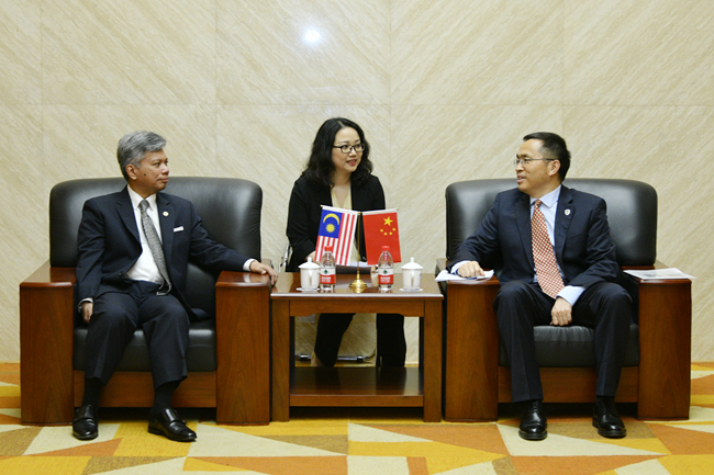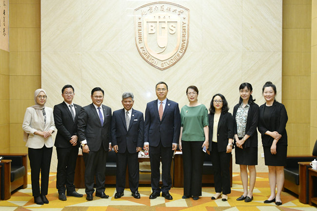 5月27日,北京外国语大学“喜迎80周年校庆、驻华大使走进北外”系列讲座举行第二讲,马来西亚驻华大使拉惹·拿督·诺希尔万就“中马关系”作专题讲座。北外校长、党委副书记杨丹会见了诺希尔万一行,讲座由太阳集团tyc9728院长苏莹莹主持。