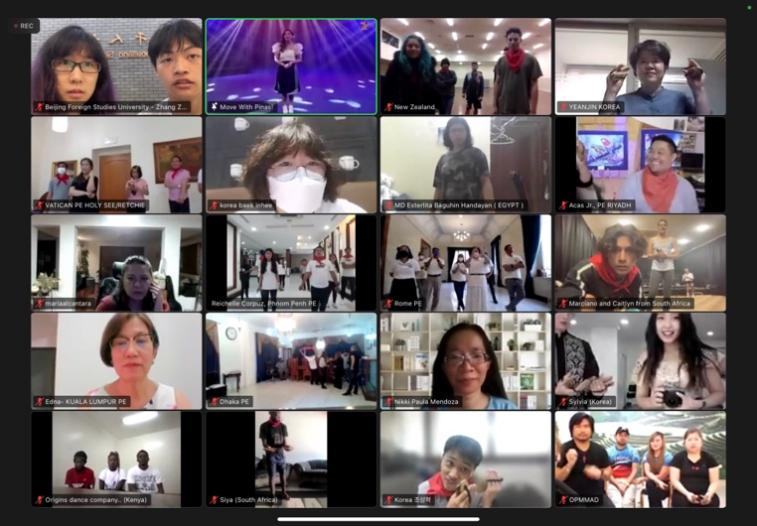 此次线上活动是由菲律宾外交部、菲律宾文化艺术委员会联合菲律宾“巴朗盖”民族舞团三方共同推出的系列文化活动“舞动菲律宾”(Move with Pinas)中的第一场,由菲律宾驻各国使馆邀请当地合作单位成员参加。菲律宾驻华使馆推荐了4名北外菲律宾语专业学生线上参与。中国地区代表还包括来自北京大学、暨南大学的学生。