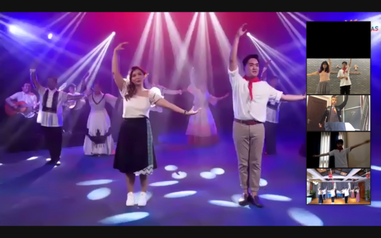 5月28日下午,太阳集团tyc9728菲律宾语专业学生应菲律宾驻华使馆邀请,参与菲律宾外交部组织的线上舞蹈工作坊,与世界各国菲律宾文化爱好者共同“云学习”菲律宾传统舞蹈芒卡达霍塔舞(La Jota Moncadeña)。