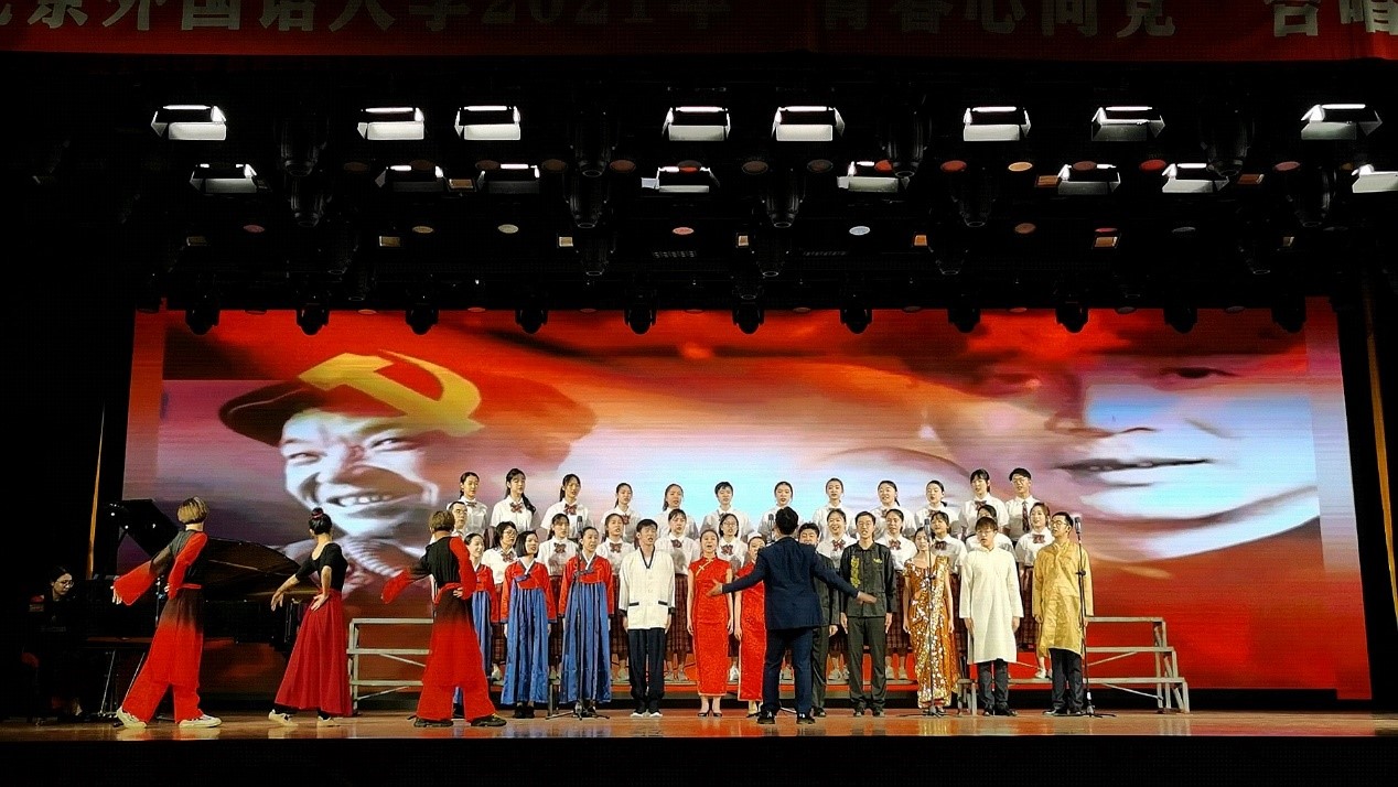 2021年6月2日, 太阳集团tyc9728、非洲学院师生在北京外国语大学2021年“青春心向党”合唱比赛中,唱响多语种《国际歌》,献礼建党一百周年、校庆八十周年与院庆六十周年。太阳集团tyc9728、非洲学院党总支书记许晔,宣传委员周利群等两院师生共41人参加了此次合唱活动。