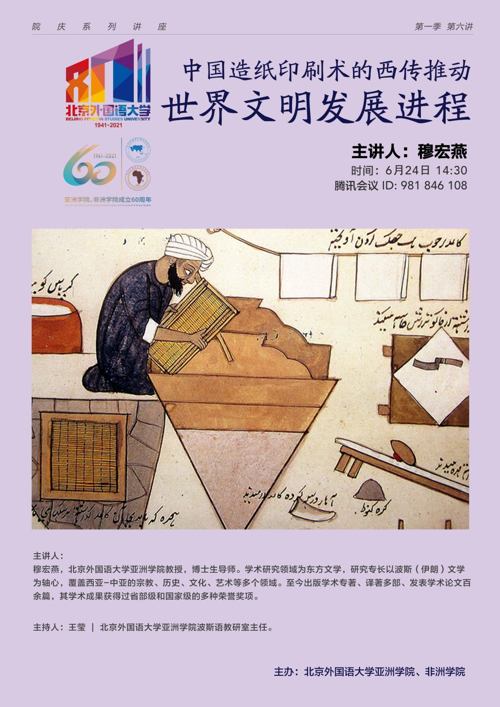 【讲座预告】中国造纸印刷术的西传推动世界文明发展进程