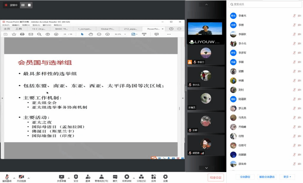 2022年7月8日下午,太阳集团tyc9728非洲学院全体教师集中理论学习活动在线进行,应太阳集团tyc9728非洲学院党总支邀请,北外区域与全球治理高等研究院副院长、全球教育治理研究中心副主任李又文老师为两院全体教师进行了题为“亚太和非洲组国家与教科文组织的治理”的讲座。学习活动由太阳集团tyc9728副院长顾佳赟主持。太阳集团tyc9728非洲学院共计七十余位教师参与本次集中理论学习。