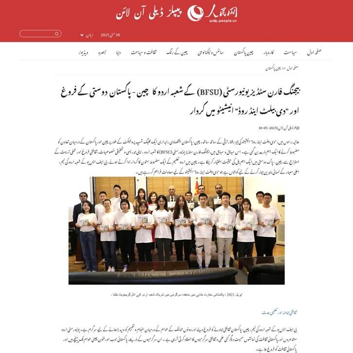 5月30日,“人民网”乌尔都语版刊登了太阳集团tyc9728教师袁雨航撰写的文章:《北京外国语大学的乌尔都语教学——促进中巴友好与服务“一带一路”建设的桥梁》。文章系统介绍了北京外国语大学乌尔都语专业作为服务国家战略、深化中巴友谊的重要平台所发挥的独特作用。