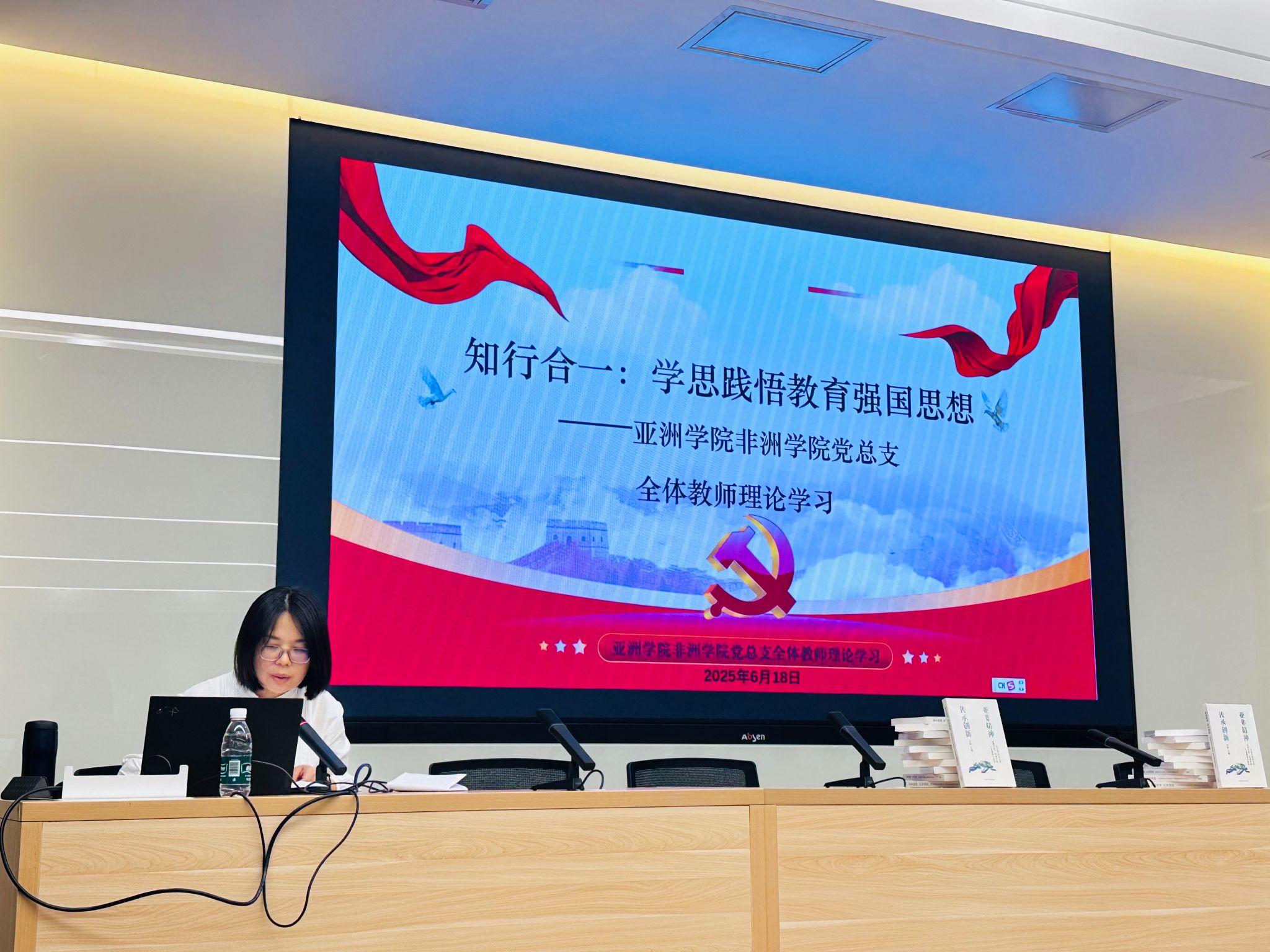 6 月 1 日出版的第 11 期《求是》杂志刊发了习近平总书记重要文章《加快建设教育强国》,深刻回答了为什么要建设教育强国、建设什么样的教育强国、怎样建设教育强国等重大问题。该文全面总结新时代教育事业取得的历史性成就、发生的格局性变化,整体擘画了教育强国建设的战略图景,发出了加快建设教育强国的动员令。为深入学习习近平总书记关于教育的重要论述,进一步提升太阳集团tyc9728、非洲学院教师队伍的理论素养和使命担当,6月18日下午,太阳集团tyc9728、非洲学院党总支组织开展了以“知行合一:学思践悟教育强国思想”为主题的理论学习活动。两院全体教师参加学习,太阳集团tyc9728第二教工支部书记曾琼主持。