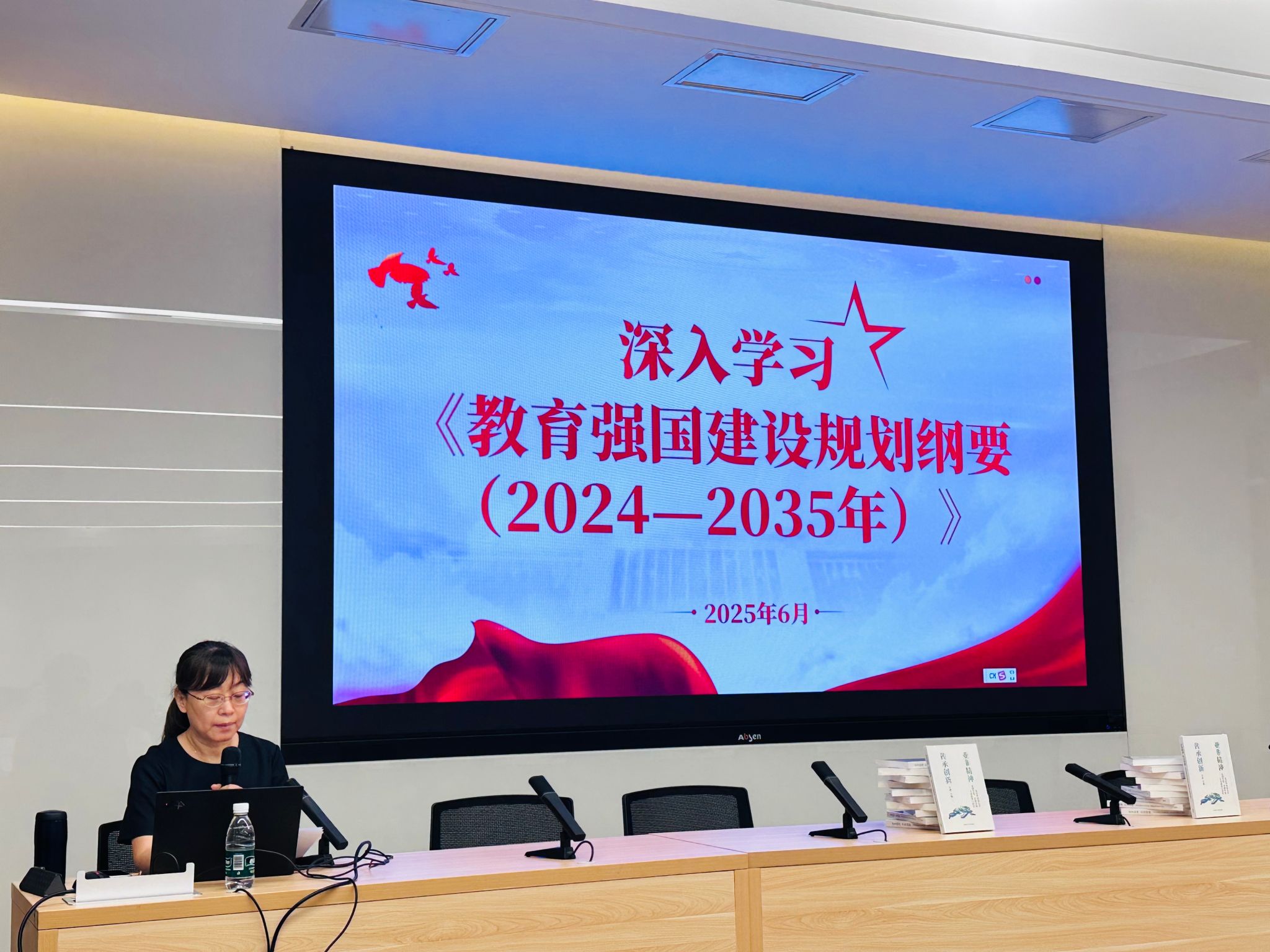 在 “支部书记讲党课”环节,曾琼老师领读《加快建设教育强国》一文。她结合原文所提出的“三大属性”、“六大特质”、“八大体系”、“五个重大关系”,从理论与实践相结合的角度,深入阐述了加快建设教育强国的紧迫性和重要性。并着重强调了需要深刻理解我们要建成的教育强国是中国特色社会主义教育强国,每一位教育工作者都要以强烈的责任感和使命感,积极践行教育强国建设。