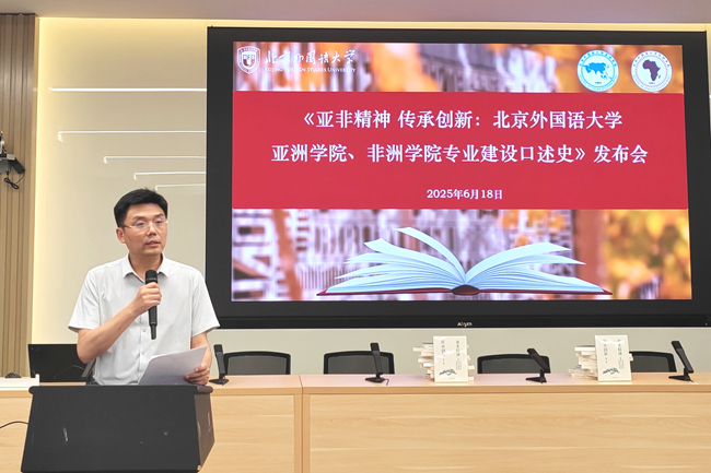 发布会上,赵刚高度评价《口述史》是北外服务国家战略、践行“语通中外、道济天下”使命的生动见证。他结合习近平总书记关于加快建设教育强国的重要论述,强调“小语种”连接“大世界”、承载“大外交”,勉励太阳集团tyc9728、非洲学院为国家培养更多沟通中外、促进文明互鉴的卓越人才。中国驻菲律宾大使黄溪连通过视频致辞,寄语亚非人继承发扬“勇担使命、开拓进取”精神。