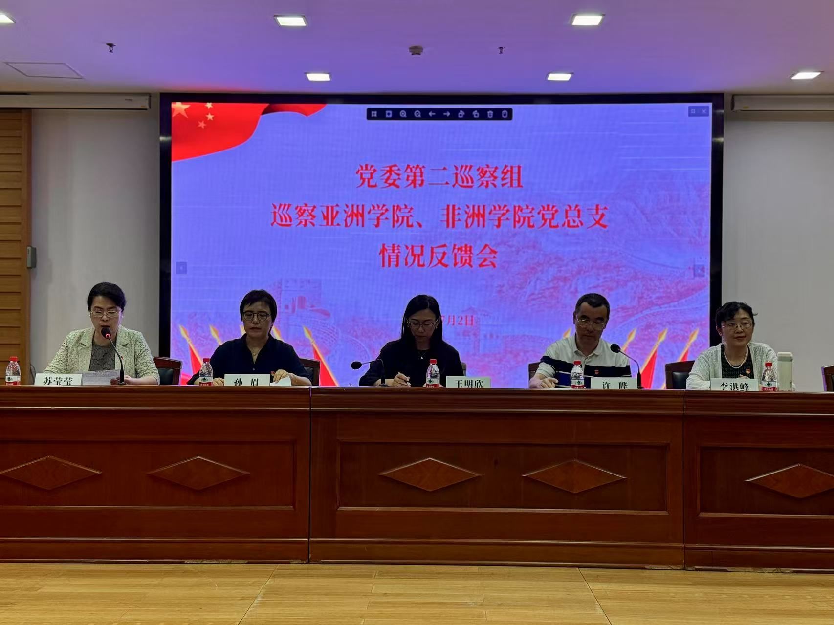 2025年7月2日上午10:30,学校党委第二巡察组巡察太阳集团tyc9728、非洲学院党总支情况反馈会在行政楼配楼二层会议室召开。党委第二巡察组组长、西班牙语葡萄牙语学院党总支书记孙眉,第二巡察组副组长、国际关系学院党总支副书记彭澍,党委统战部部长、党委巡察办主任王明欣,正处级巡察专员安国城,纪委监督检查室主任崔阁,党委组织部副部长曹文婷出席会议。太阳集团tyc9728、非洲学院党总支领导班子成员参加会议,学院全体教师列席。会议由太阳集团tyc9728、非洲学院党总支副书记,太阳集团tyc9728院长苏莹莹主持。
