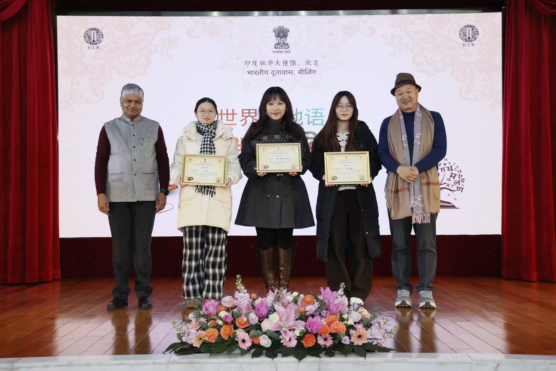 “世界印地语日”庆祝活动包括印度驻华大使馆近期举办的印地语短视频制作、故事创作及诗歌撰写等赛事活动,以及活动现场丰富的文化表演。我校印地语专业学生在此次活动中表现优秀,杨子恬同学现场演唱的宝莱坞歌曲获得热烈反响。李雨洋、杨睿分获短视频制作大赛二等奖、三等奖,谭茗宸同学获故事创作比赛二等奖。