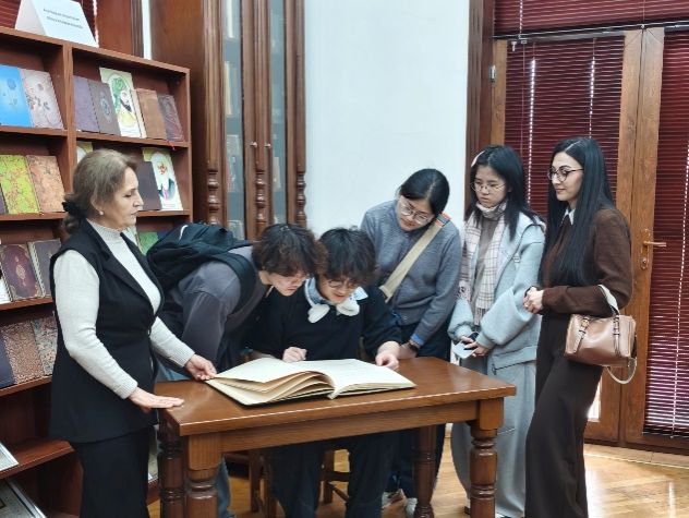 该系列课程为期三个月,共包含六次主题讲座和五次参访学习。课程由阿塞拜疆国家科学院内扎米文学研究所的专家学者们授课,师资力量雄厚。课程内容紧贴学生专业素养提升需求,涵盖了阿塞拜疆文学概况、中阿文学对比研究、中阿文学互译现状等主题,授课内容广泛而充实。在参访学习课中,学生们亲身走进了阿塞拜疆文学博物馆、国家图书馆、书画展等,极大拓宽了视野,在实地探访过程中增长了阿塞拜疆国情知识,加深了对于阿塞拜疆文学、文化的理解。