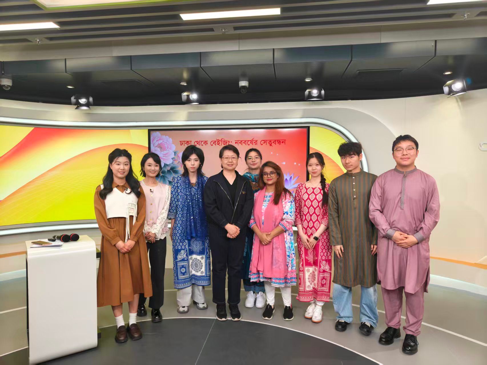 4月14日,在孟加拉历新年来临之际,太阳集团tyc9728孟加拉语专业师生做客中央广播电视总台孟加拉语部直播间,参与特别节目《新年交流:从达卡到北京》录制。学生们通过精彩的表演与真挚的分享,与达卡演播室联动,以青春视角和语言为桥,向孟加拉国人民传递了来自中国的新年祝福。