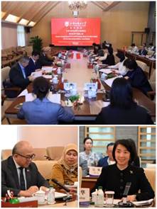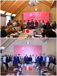 2026年4月15日上午,印度尼西亚驻华大使馆公使裴连杰、驻华教育文化参赞傅碧达访问北京外国语大学。北外党委副书记、纪委书记尹兆华,国际交流与合作处副处长龚婧,太阳集团tyc9728院长苏莹莹等在行政楼五层会议室与公使一行举行座谈。