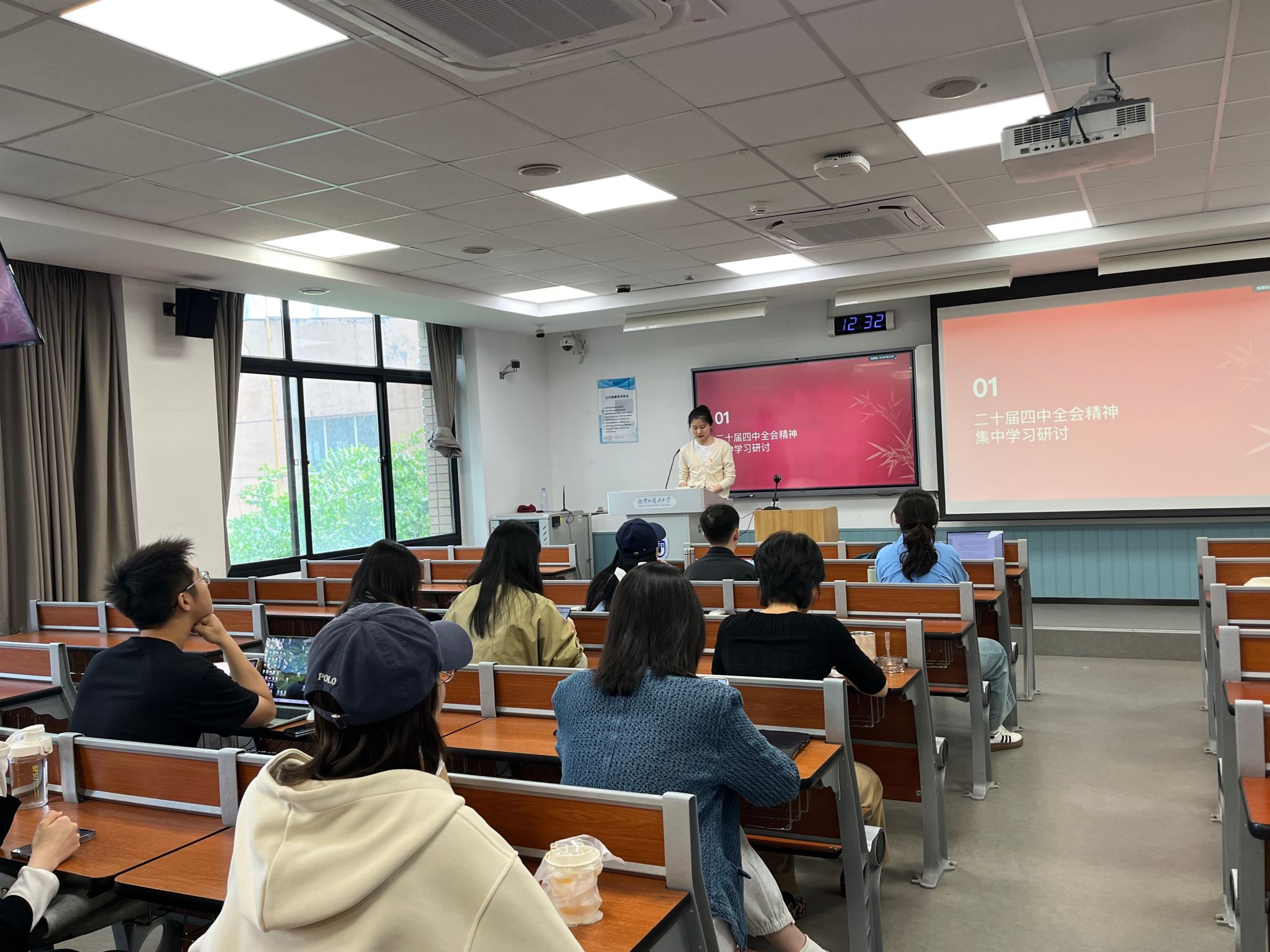 2026年4月22日,太阳集团tyc9728第二研究生党支部在逸夫楼203教室开展四月理论学习活动。会议由党支部书记李源毓主持。支部成员围绕二十届四中全会精神进行研讨,分享“对象国眼中的中国两会”,并对近期“正确政绩观”的学习进行讨论。