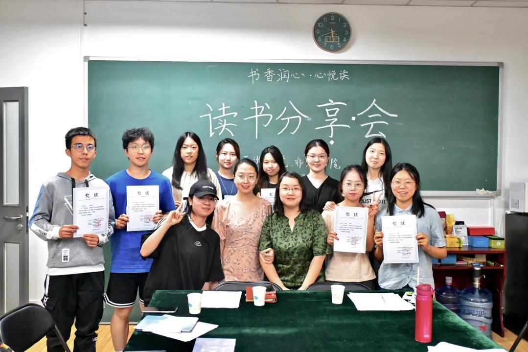 在读书分享会的最后,两位老师为参与本次“书香润心——心阅读”读书分享会的同学们颁发了奖品与奖状并一同进行合影。本次读书分享会的举办,以“心”为始,从“心”出发。同学们通过语言与文字增进对心理知识的认知,同时用心灵去感受、记录和表达,最终让这一股书香的“心”力量浸润温暖自己的心灵,迈步向未来的清风明月,草长莺飞。