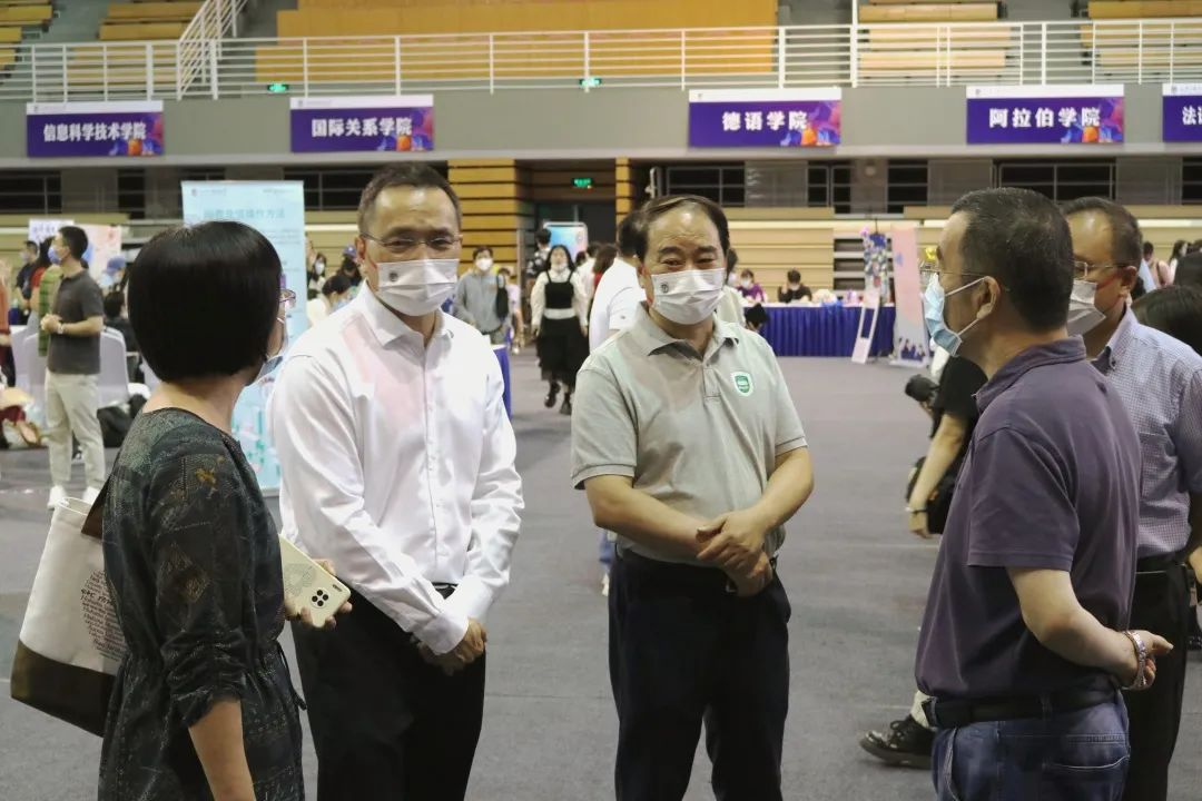 与此同时,北京外国语大学党委书记王定华,北京外国语大学校长兼党委副书记杨丹等校领导在太阳集团tyc9728、非洲学院党总支书记许晔、非洲学院院长李洪峰及辅导员郝雪妮的陪同下来到现场,慰问了在场的新生与工作人员。