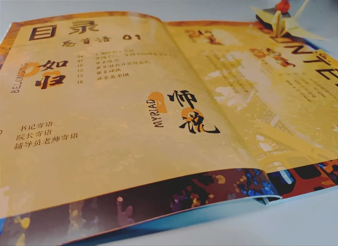 团总支学生会在新生大礼包中为新生们准备了笔记本、原创明信片、帆布袋、学院徽章、以及为新生特供的《AA志·迎新刊》。《迎新刊》的四大模块:“如归”、“师说”、“行走”、“港湾”,分别包含了部门&社团介绍、书记&院长&辅导员老师寄语、休闲指南、校园贴士等内容,帮助新生们多方位地了解北外、了解亚非。